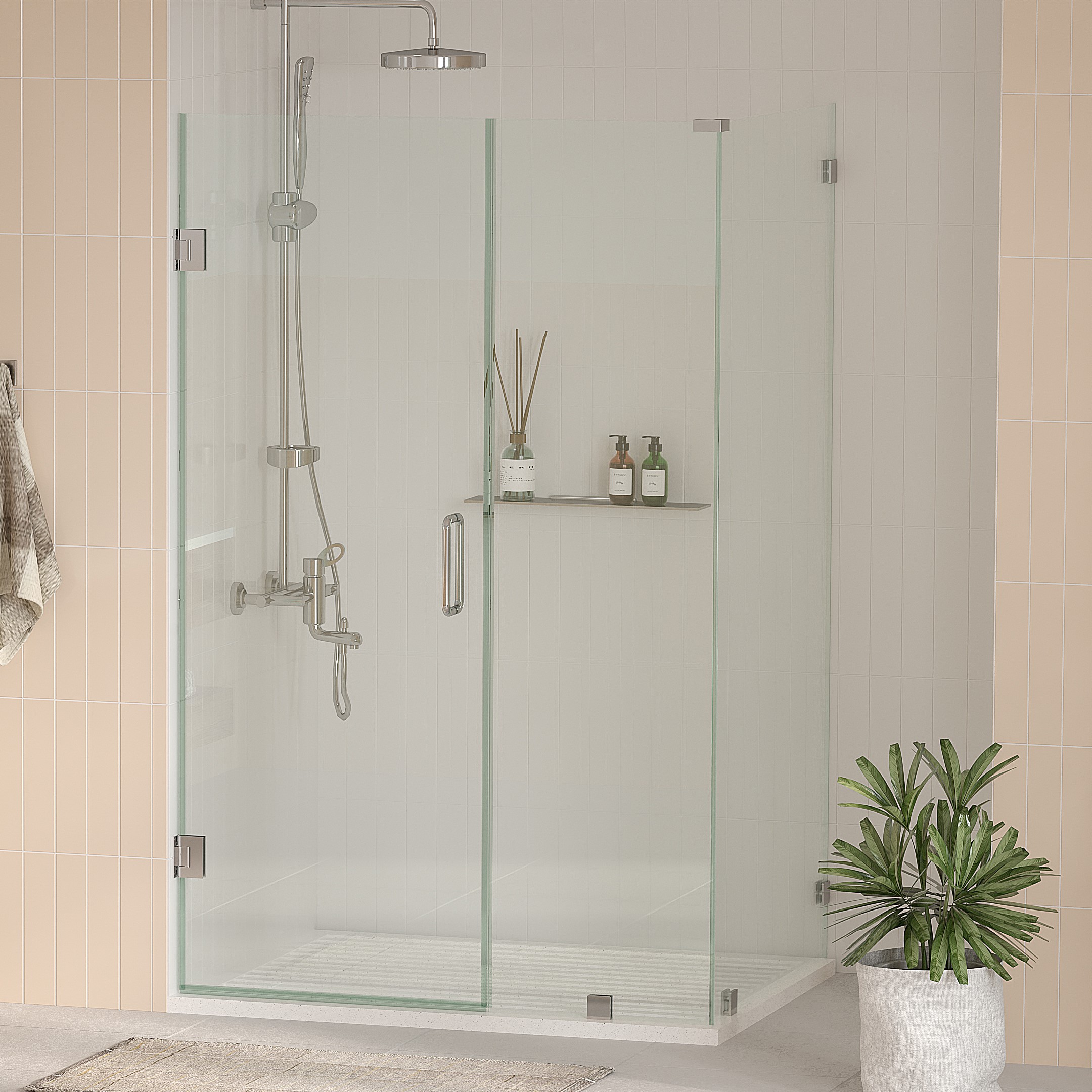 Frameless Corner Sliding Enclosure with 3/8" Clear Easy-Clean Tempered Glass.